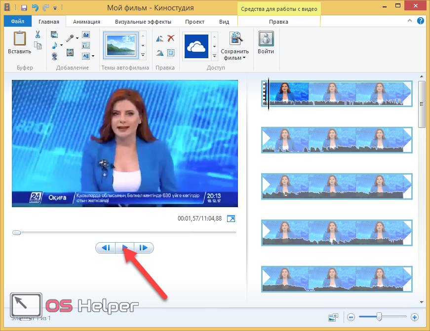 Всё как в обычно проигрывателе , очень удобная функция для предпросмотра. Можно перематывать, ставить на паузу и проигрывать, все действия привязаны к положению ползунка на таймлайне, о чём поговорим далее.