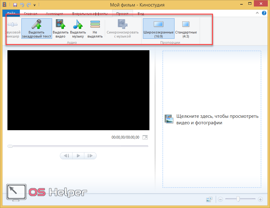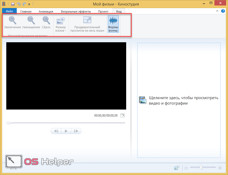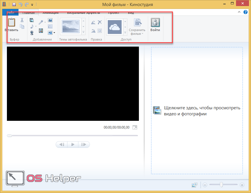 Открыв программу, вы поймете, что интерфейс Киностудии (Муви Мейкера 2012) сильно напоминает все остальные современные приложения Майкрософт.