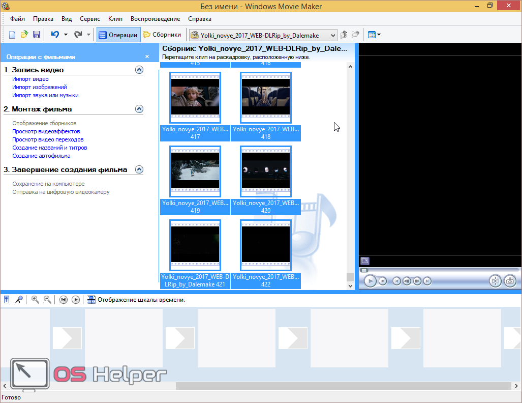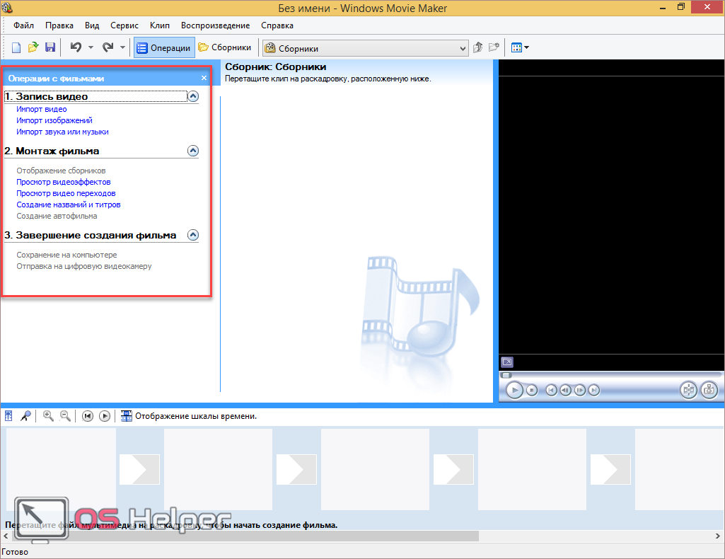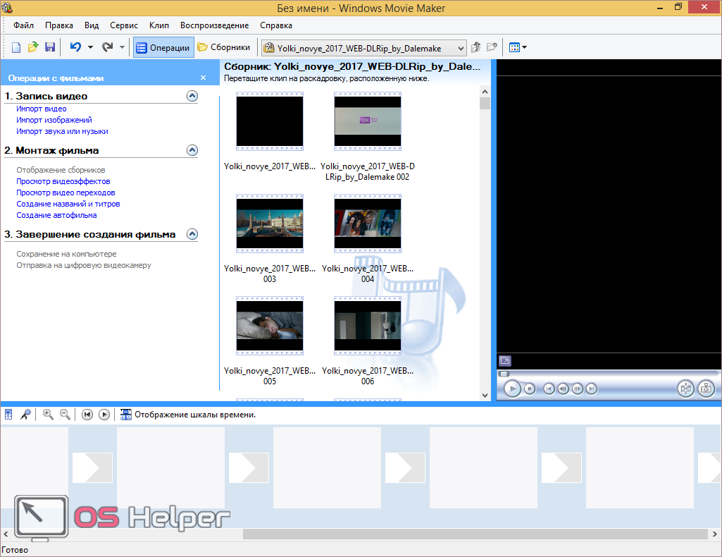 Как работать с программой Movie Maker мы разберёмся чуть позже, а пока пройдёмся по элементам интерфейса. Рассматривать мы будем классический интерфейс, и все инструкции будут основываться на нём. В live версии монтаж происходит похожим образом, но отличия есть, и весомые. Пойдём по порядку, скажем о каждом модуле интерфейса отдельно пару слов.