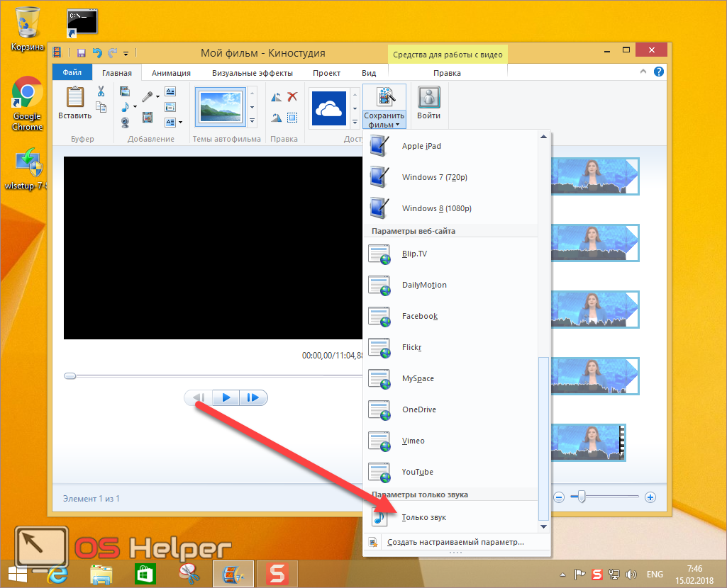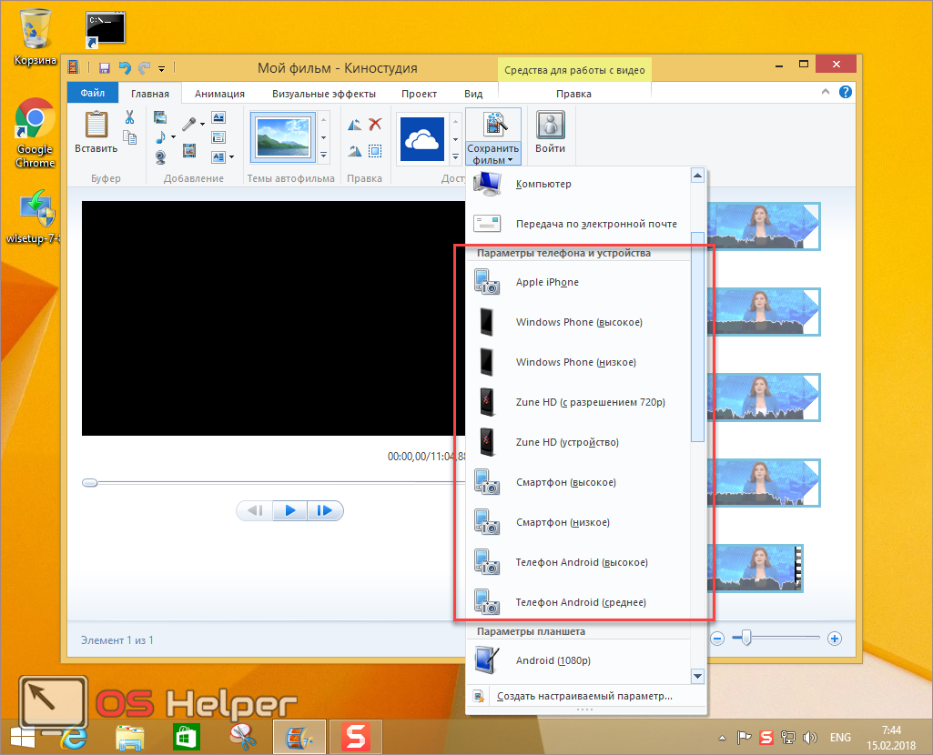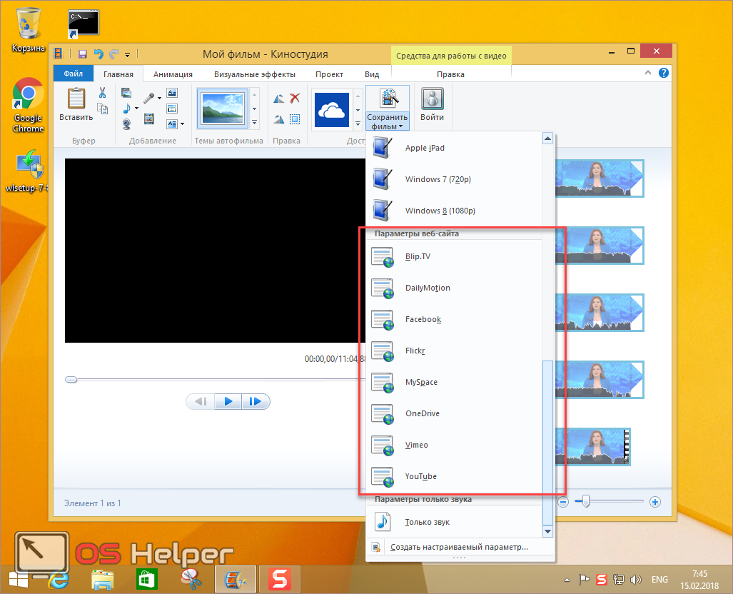 Чтобы сохранить получившийся результат в формате видео для Windows 7, сделайте следующее: