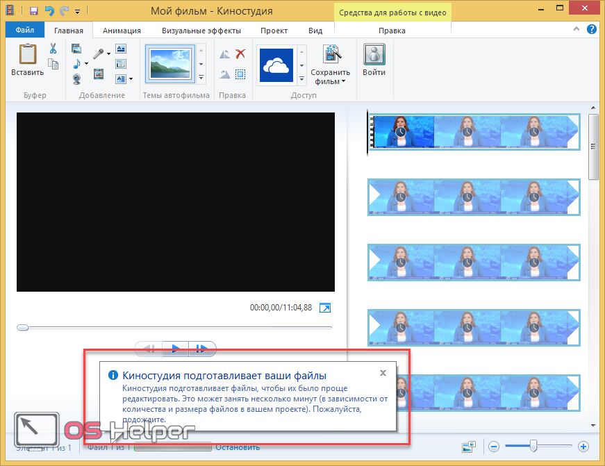 - После этого вы увидите сообщение о том, что происходит подготовка файлов. То есть, ваш видеоролик делится на фрагменты.