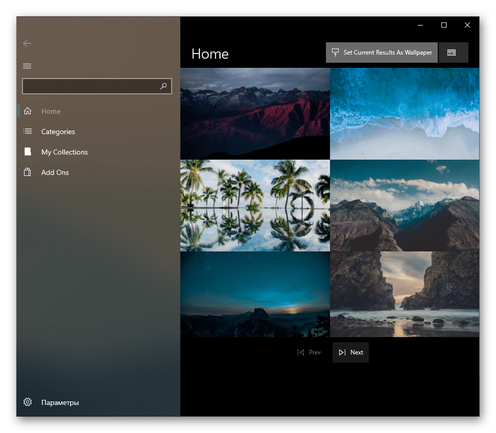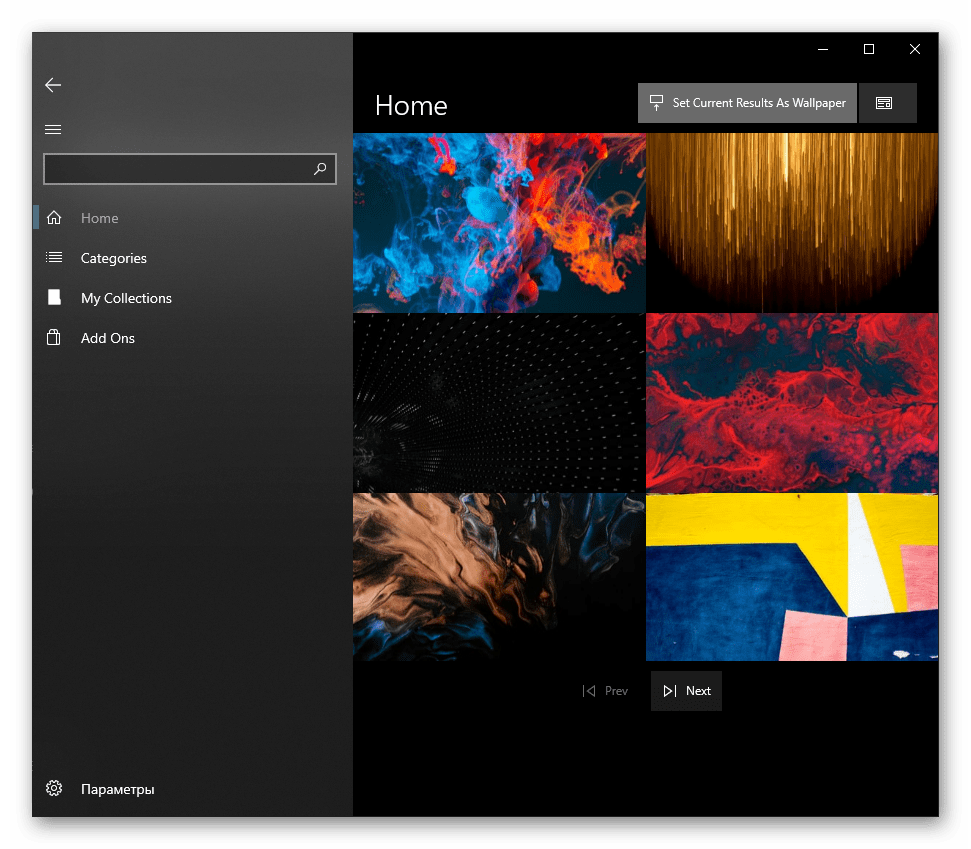На вкладке «Home», открытой по умолчанию, сразу будут отображаться последние добавленные обои. Листая страницы кнопками «Next» и «Prev», выберите изображение, которое хотите видеть фоновым.