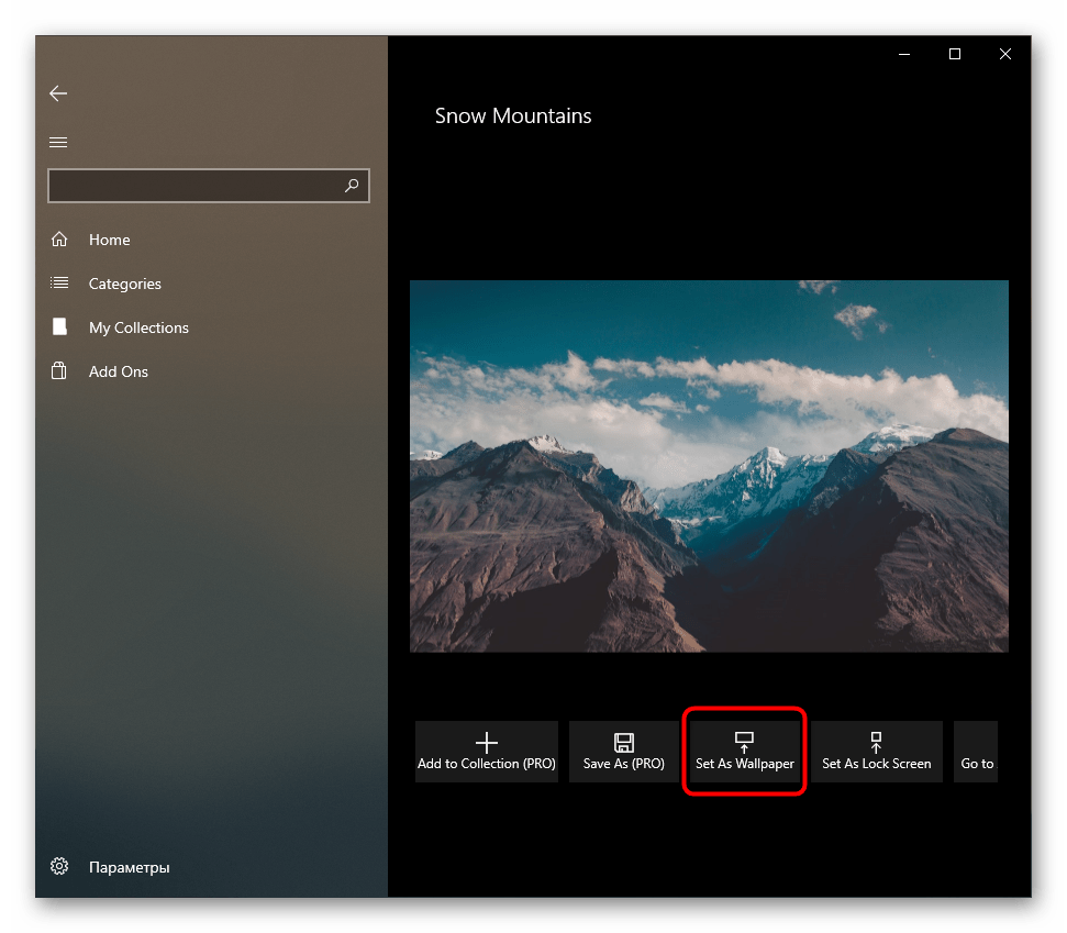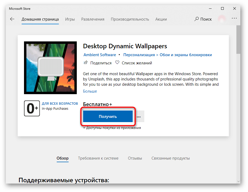 Пользователи, желающие не тратить время на поиски картинок, могут установить программу, которая будет делать это за них. Подобных приложений не так уж и много, и самые современные варианты можно найти в фирменном Microsoft Store. Устаревший, хоть и известный софт типа DesktopMania мы рассматривать не будем, так как набор картинок у него сомнительного качества. Вместо этого разберем одно из приложений, доступных в магазине для Windows 10.