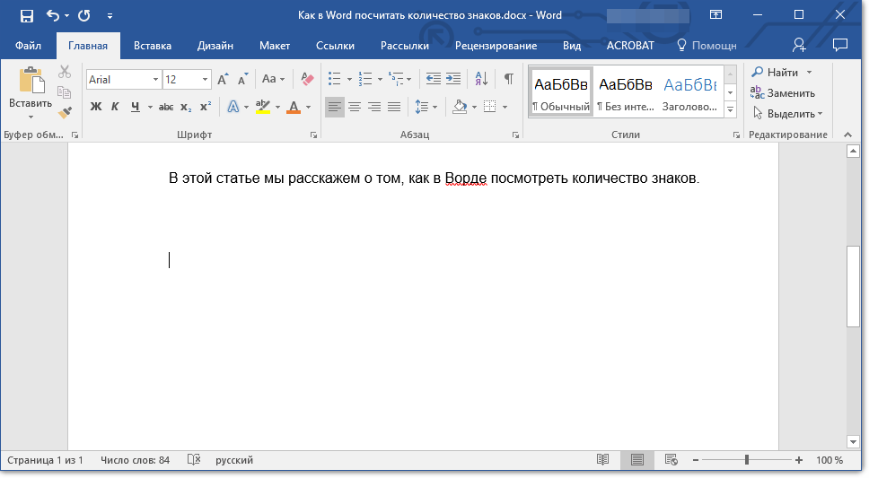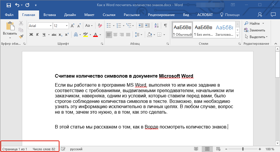Считаем количество символов в документе Microsoft Word