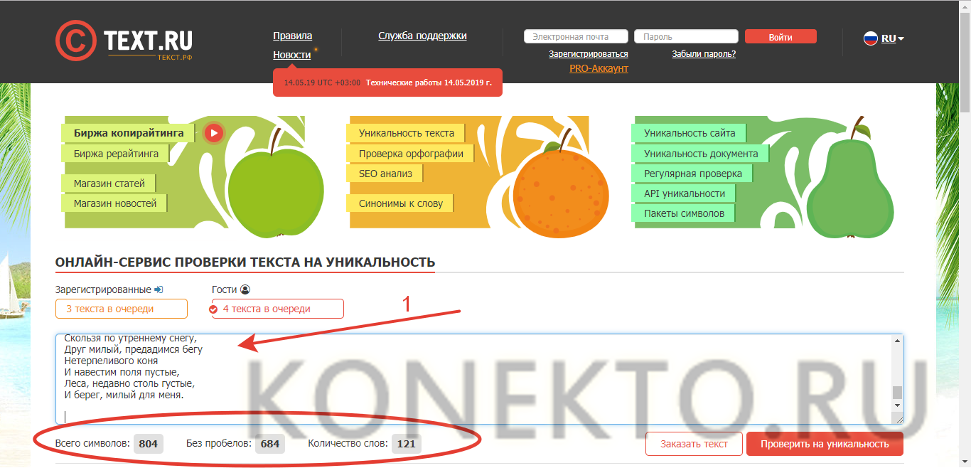 3. text.ru – подсчет знаков и проверка уникальности