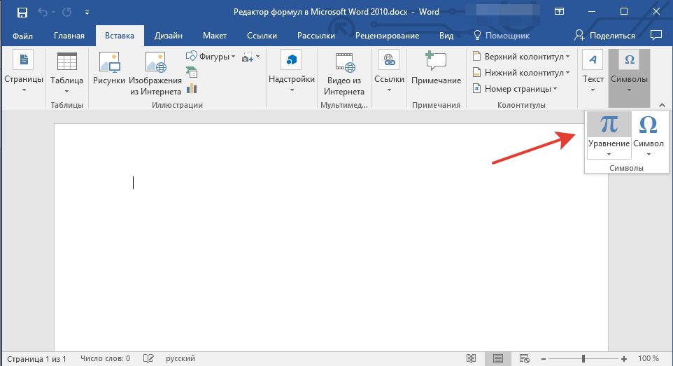 Поэтому если вы пользуетесь офисным пакетом приложений от Microsoft, выпущенным в 2010 году, то для вставки математических выражений можете воспользоваться инструкцией, описанной выше.
