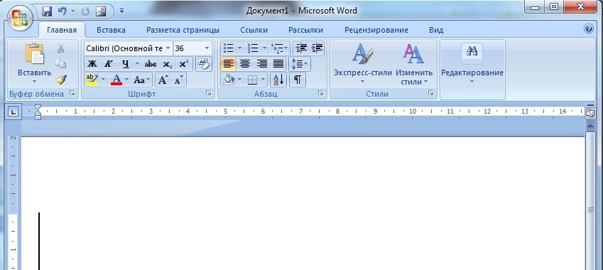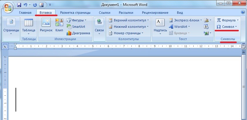 Первый шаг. Работу начнем в чистом листе, сначала определяемся с местом для вставки этого значка. В нашем примере будем его вставлять на первую строчку. Активируем в этом месте курсор.