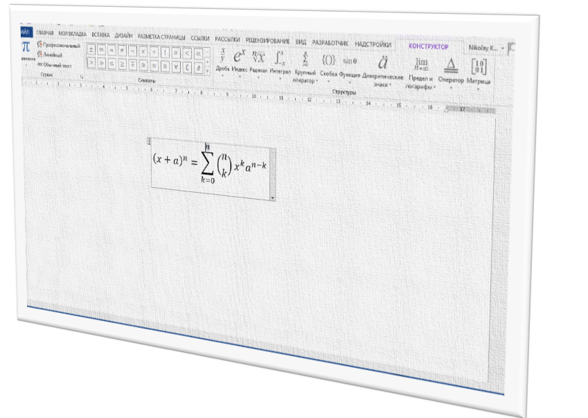 В качестве формулы для создания в Word используем математическую формулу Бином Ньютона, выглядит она вот так: