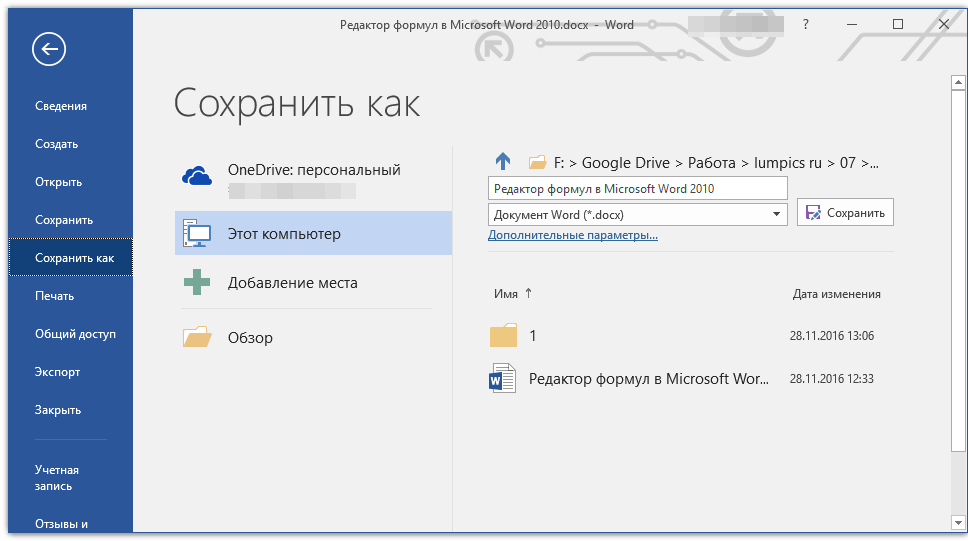 Примечание: Если документ был преобразован и сохранен в формате Ворда 2010, добавленные в него формулы (уравнения) будет невозможно отредактировать в ранних версиях этой программы.