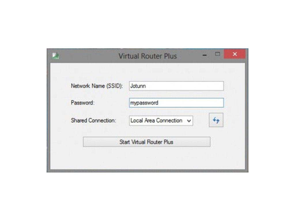 Интерфейс программы Virtual Router Plus, позволяющей делиться Интернетом с ноутбука