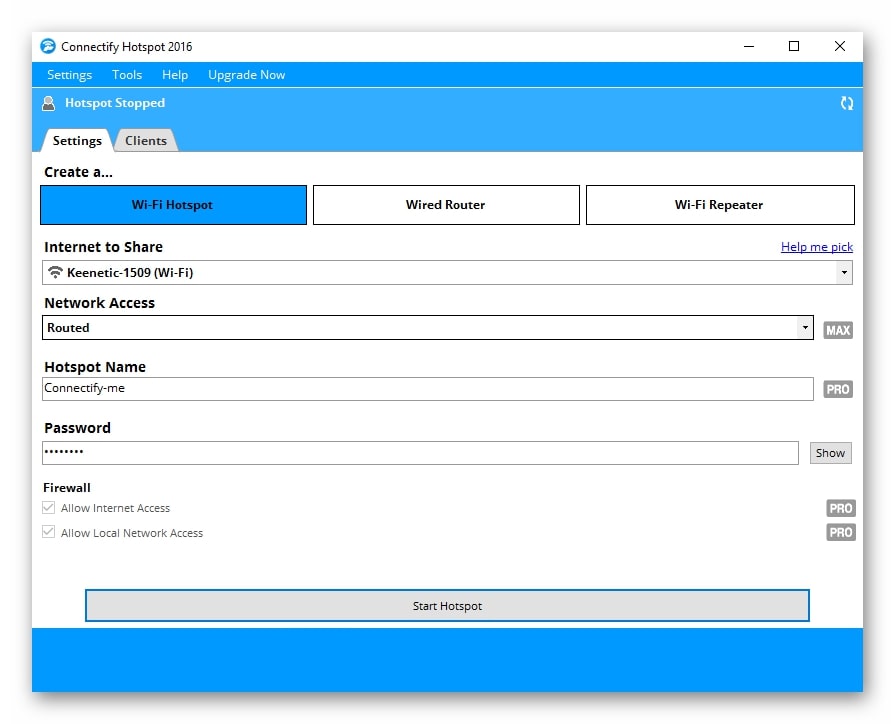 Программа Connectify 2016, которая помогает запустить хот-спот