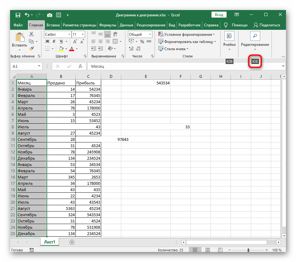 Сперва нажмите Ю, а затем Е для перехода в интересующее меню «Редактирование».