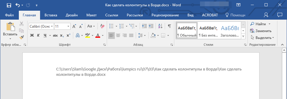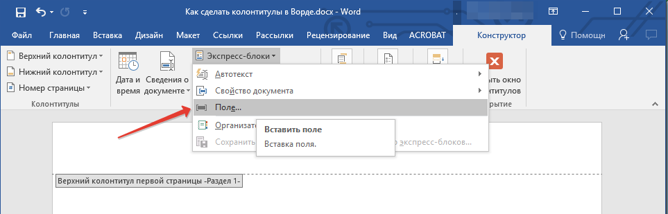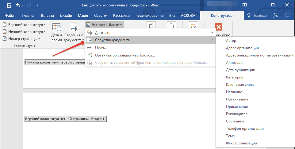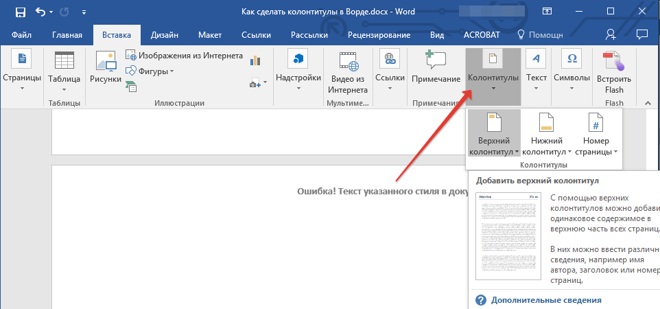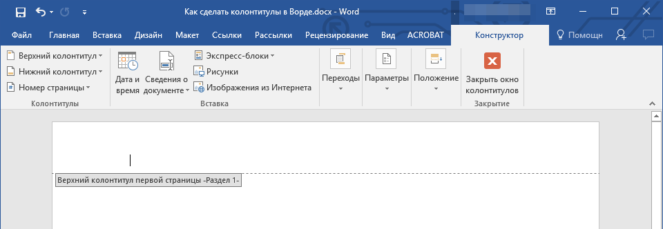 Как в Ворде сделать колонтитулы