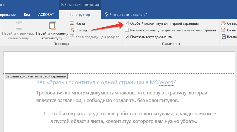 Как сделать особый колонтитул для первой страницы