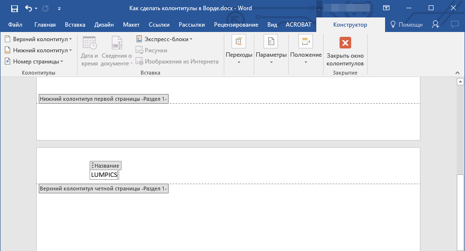 Как редактировать колонтитулы