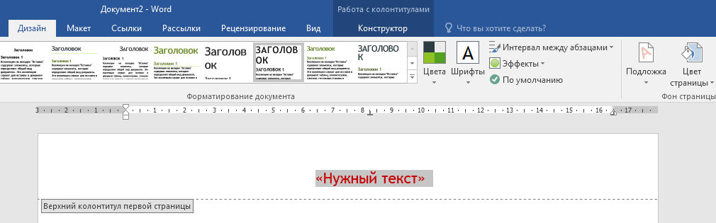 - Сделайте так, чтобы этот колонтитул был отличным от других, для этого:
