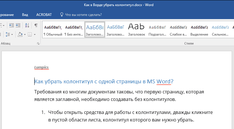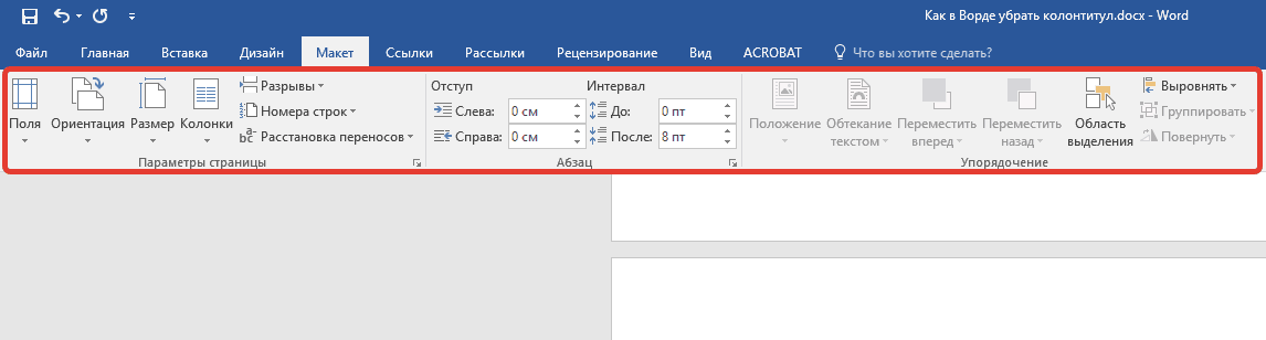 Как убрать колонтитулы в Word полностью