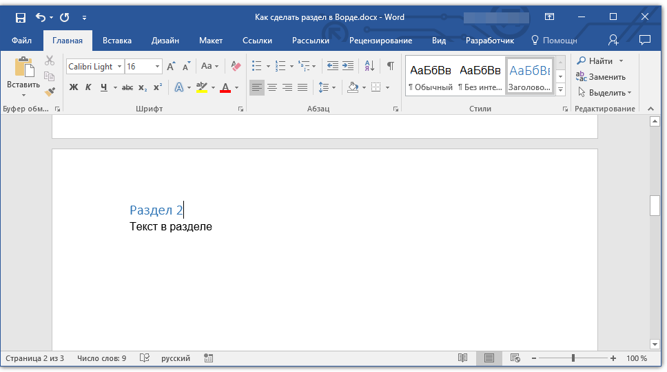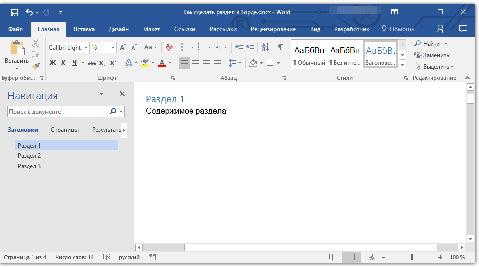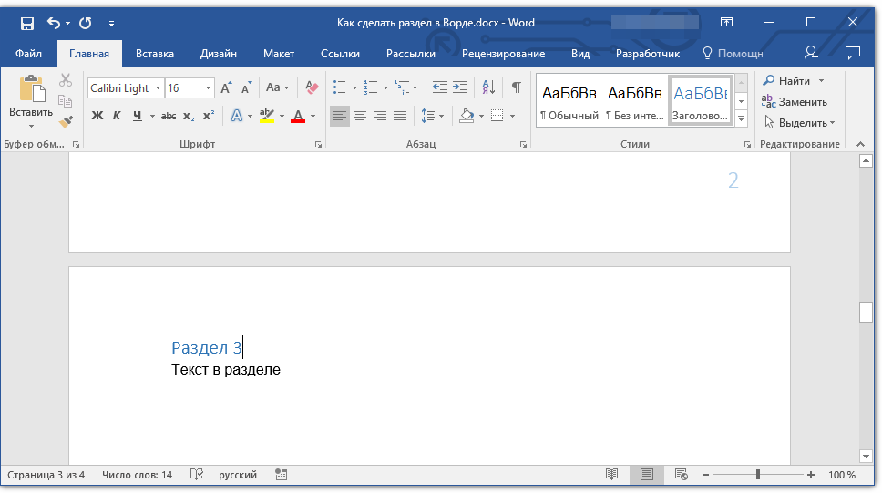 Как сделать разделы в Ворде