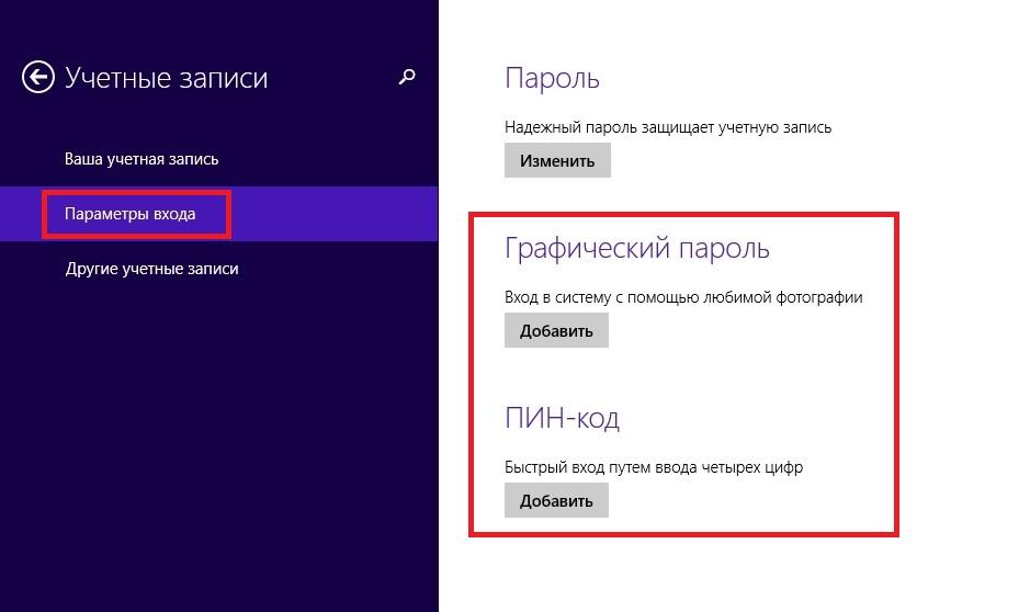 Восстановив доступ к своей учётке в Windows 8, вы можете установить новые альтернативные методы входа в систему с помощью параметров операционной системы. Этими методами являются графический пароль и ПИН-код.