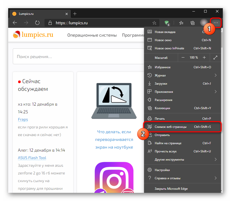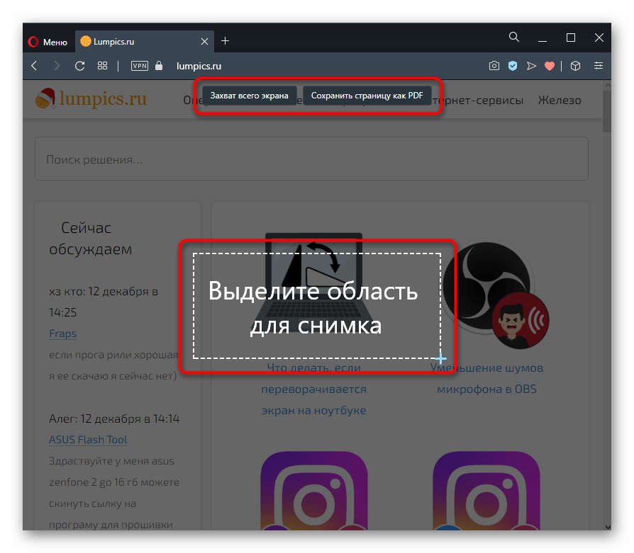 В некоторых браузерах и вовсе есть своя функция создания скриншота, снимающая надобность установки стороннего решения. Мы продемонстрируем, как создавать скриншоты в трех популярных веб-обозревателях.