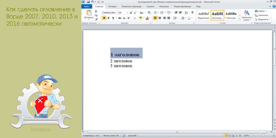 Как сделать оглавление в Ворде 2007, 2010, 2013 и 2016 автоматически