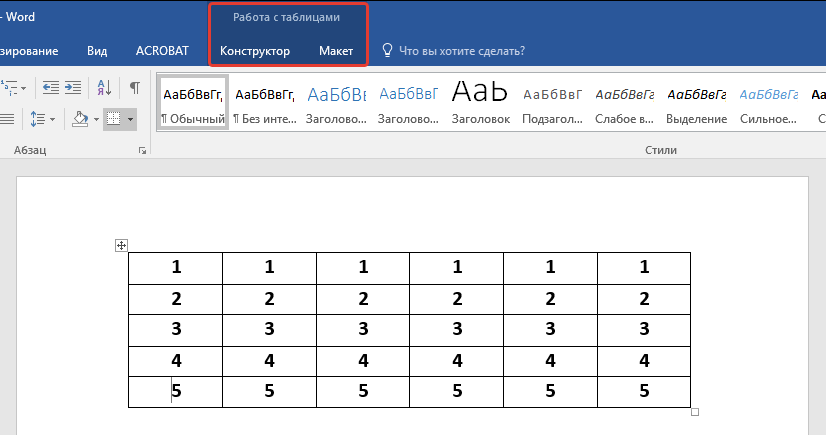 После этого на ленте появится появится раздел «Работа с таблицами»,