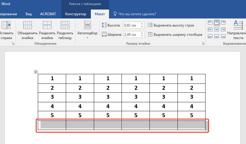 Рассмотренные выше решения по своей сути являются разной интерпретацией обращения к инструментам раздела «Строки и столбцы», представленным как на ленте (вкладка «Макет»), так и в контекстном меню. Добавить новую строку можно и не вызывая их, буквально в один клик.