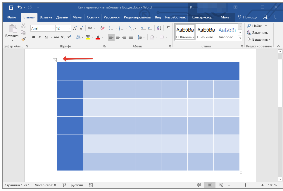 Кроме того, при необходимости вы всегда можете переместить таблицу в любое место документа.