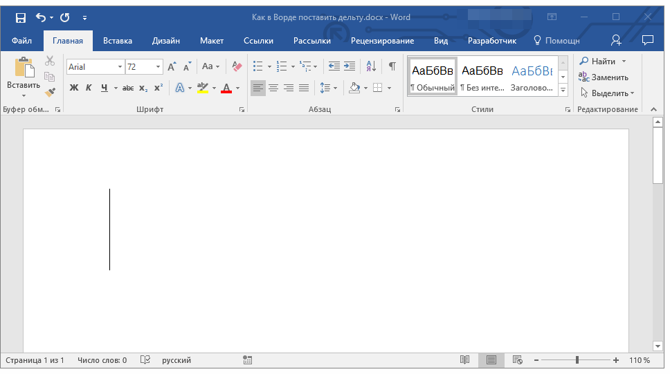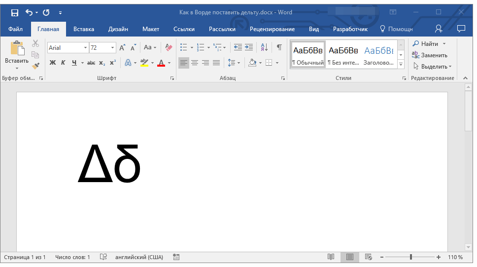 4. В выбранном вами месте появится знак большой или маленькой дельты, в зависимости от того, какой код вы ввели.