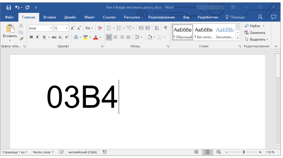 2. Введите код “0394” без кавычек для вставки большой буквы “Дельта”. Для вставки маленькой буквы введите в английской раскладке “03B4” без кавычек.