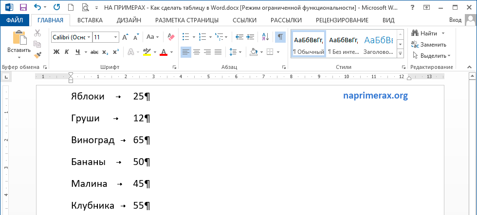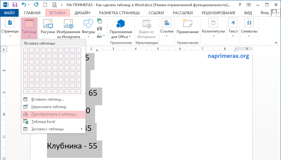 Как в Word 2013 преобразовать текст в таблицу и обратно
