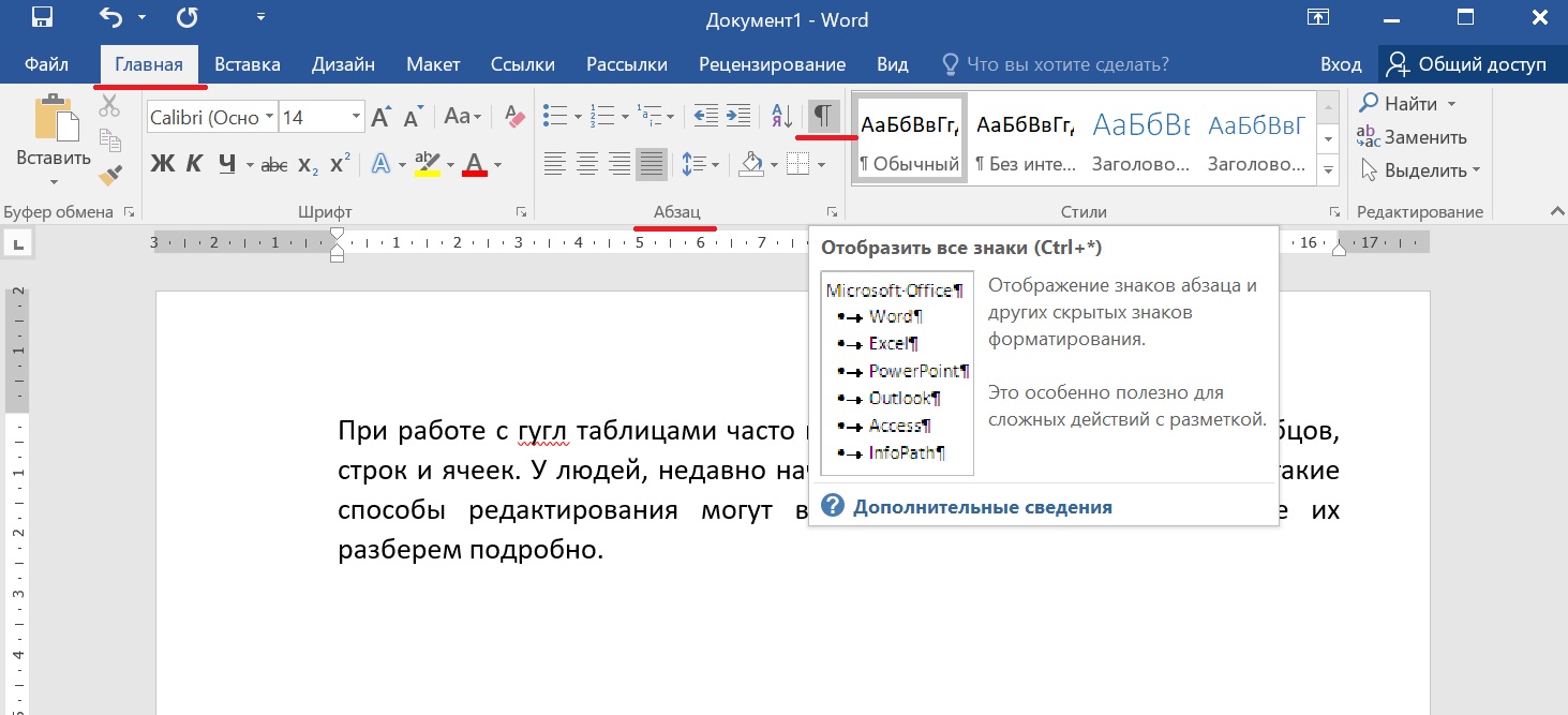 1. Щелкните значок «Показать / скрыть» , который отображается как знак абзаца (¶) на вкладке «Главная». Это покажет скрытые непечатаемые символы, такие как пробелы и разрывы страниц.