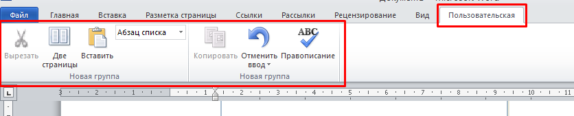 Процесс конфигурации такой же, как и для Панели управления, однако здесь нельзя создать свою группу или раздел. Используются только встроенные функции Word и отображаются в виде небольших условных знаков.