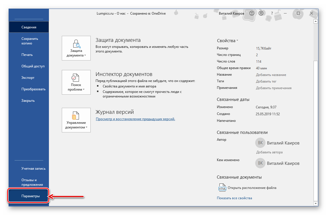 Переходим в «Параметры Word»