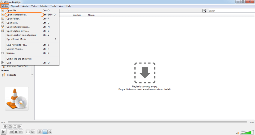 Шаг 1: Запустите приложение VLC Media Player в вашей системе и откройте Media > Open Multiple Files.