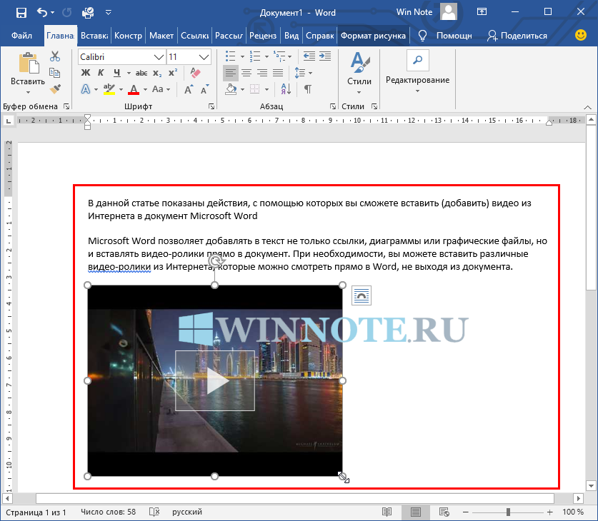 Как вставить видео в Word из интернета