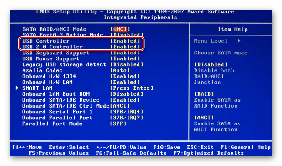 Обратите внимание, что на некоторых компьютерах после «USB» написано еще «2.0», это и есть необходимый разъем просто другой версии. Сохраните настройки и выйдите в главное меню