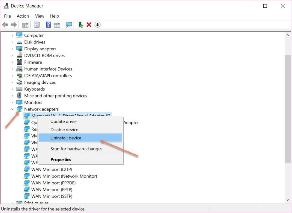 Эта ошибка также может быть вызвана неисправными сетевыми адаптерами. Вы можете попробовать переустановить сетевые адаптеры, чтобы решить эту проблему.