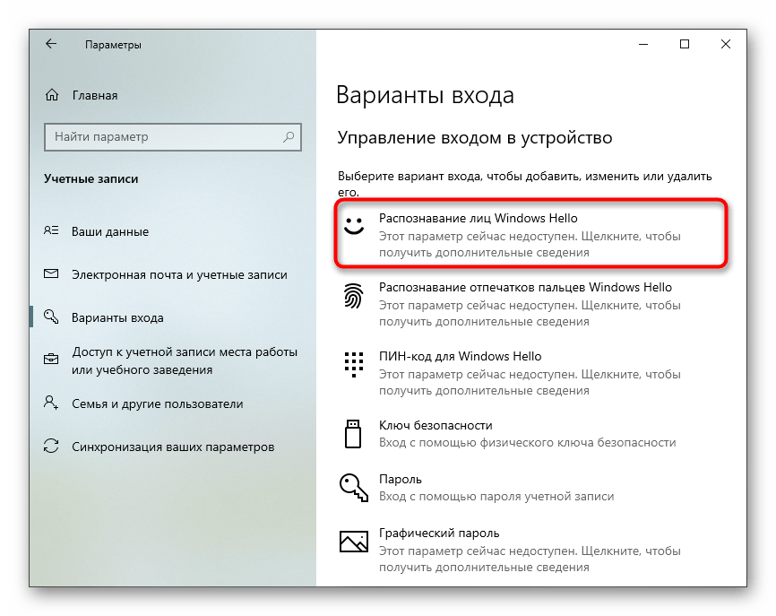 В случае, когда опция доступна для настройки, следуйте появившимся на экране инструкциям, создав скан лица и задав пароль. Сам пин-код необходим для входа в учетную запись при возникновении ситуации, когда веб-камера вдруг сломается или функция по каким-то причинам не сработает.