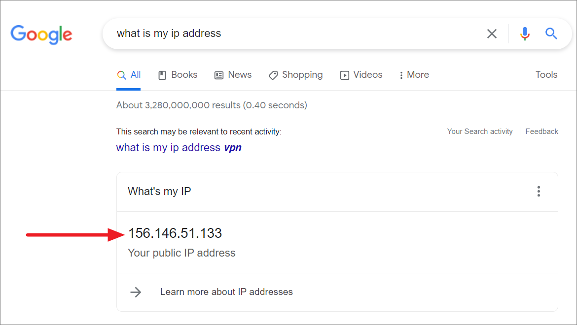 Чтобы проверить, работает ли VPN, вы можете выполнить поиск «Какой у меня IP-адрес?». в желаемой поисковой системе, и он должен показывать IP-адрес VPN вместо вашего фактического общедоступного IP-адреса.