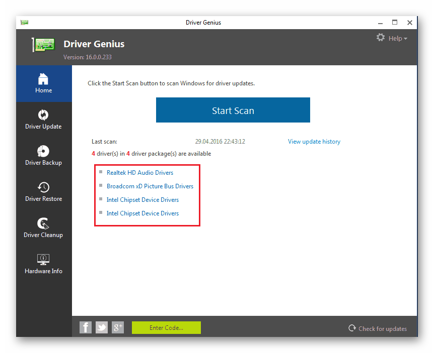 После того, как вы нажали «Начать поиск», вы попадете на страницу «Результаты драйвера».