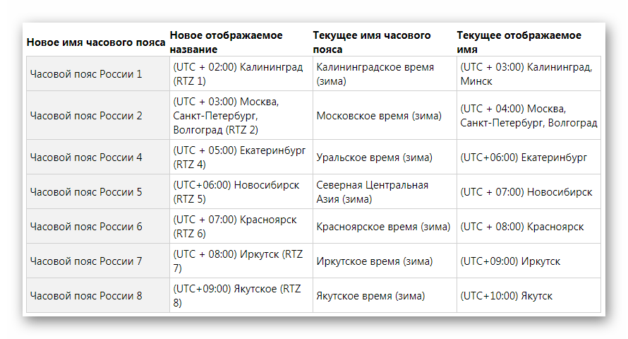 В своем патче разработчики добавили новые часовые пояса для Российской Федерации, обновили семь существующих и объединили две. Зоны 1, 2, 4, 5, 6, 7 и 8 были обновлены, поэтому пользователи с этим временем будут автоматически перенаправлены на последние версии. Взгляните на таблицу ниже. В нем вы найдете подробную информацию о новых изменениях.