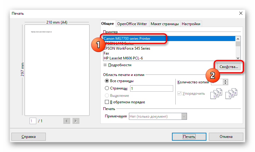 Печать тестовой страницы с принтера