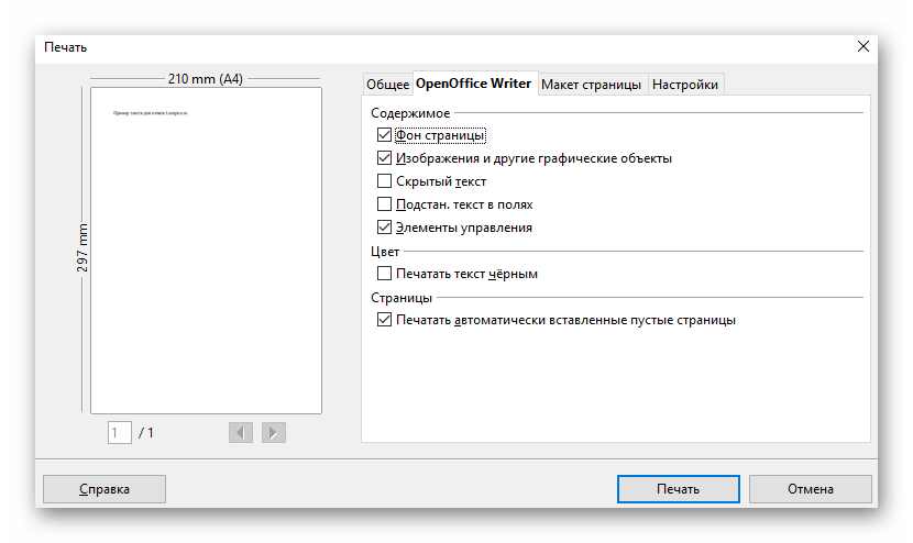 Отыщите инструмент, отвечающий за выбор правильного режима печати, отметьте его галочкой и запустите процесс.