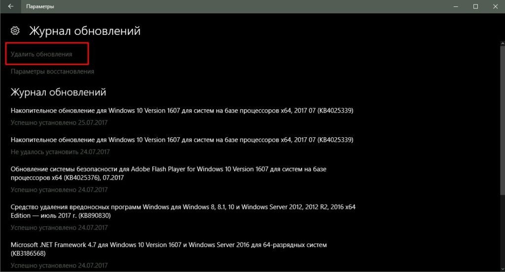 Как удалить последние установленные обновления в Windows 10