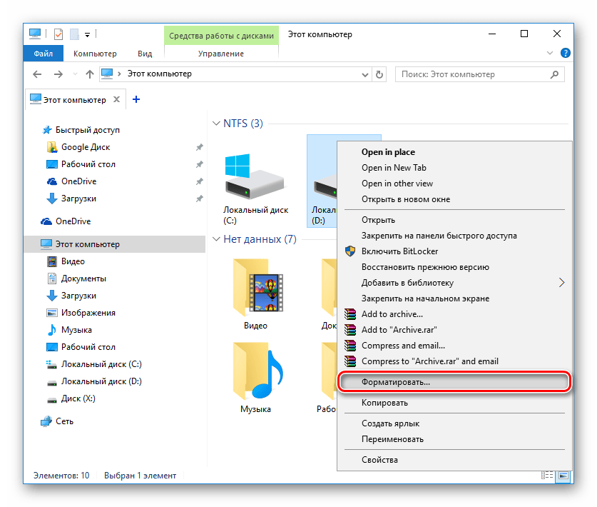 - Жмите правой кнопкой мышки на интересующий накопитель.